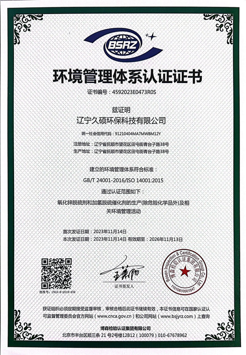 环境管理体系认证证书