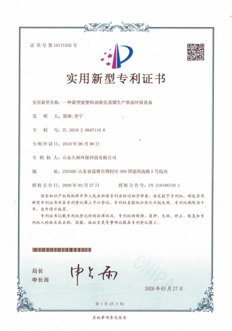 实用新型专利证书