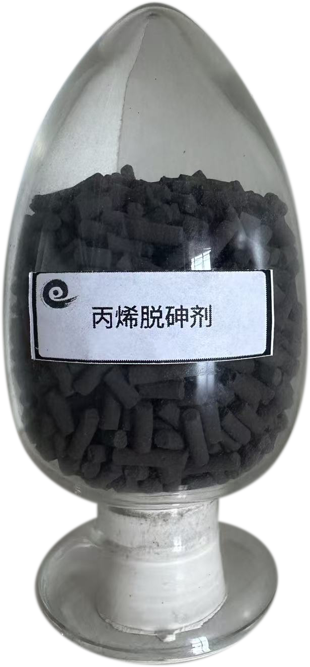 脱砷剂可在高空速和极高砷化氢浓度的工艺条件下使用,主要用于丙烯,乙烯等物料中砷化氢的脱除以保护后面的聚合催化剂及其它深加工催化剂。该产品还特别适合于催化干气及催化干气的乙烯提浓物料中砷化物的精密脱除。