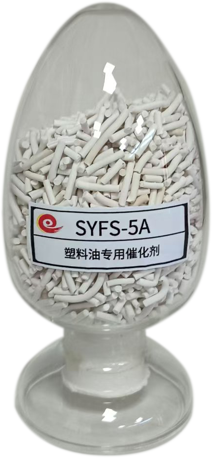 我公司针对废塑料炼制柴油的项目,研制出一种废塑料油专用催化剂,型号为SYFS-5A   SYFS-5B。该催化剂能明显地提高出油的质量。而且对产物柴油的选择性高,蒸馏后,油成淡黄色,密度能达到0.79-0.82,臭味基本消除(因其对塑料中的添加剂也进行了裂解处理)。十六烷值、辛烷值高,裂解气中C2干气很少,液体收率在90%以上; 还具有降凝功效(凝点可控制在0--20℃)。