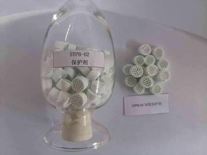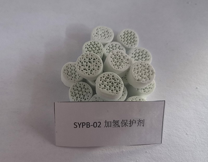 SYPB-02是负载适量金属的蜂窝鸟巢保护剂,此保护剂是在高孔容大比表面积异形载体上负载优选的活性金属组元,可对原料中的胶质和烯烃以及稠环芳烃、金属进行转化和加氢饱和,达到防止压降上升、延长运转周期、脱胶质、保护主催化剂的目的。